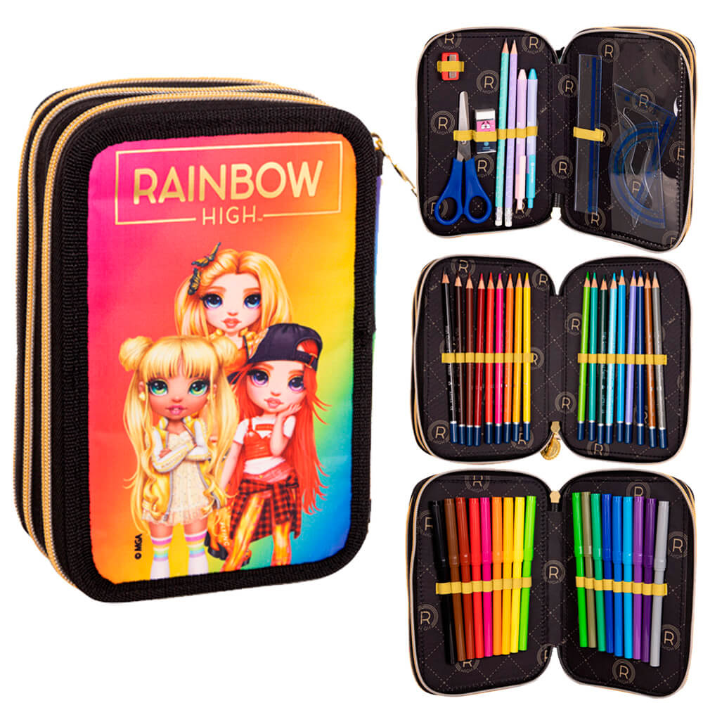 3-komorowy piórnik Jumbo, wyposażenie Rainbow High
