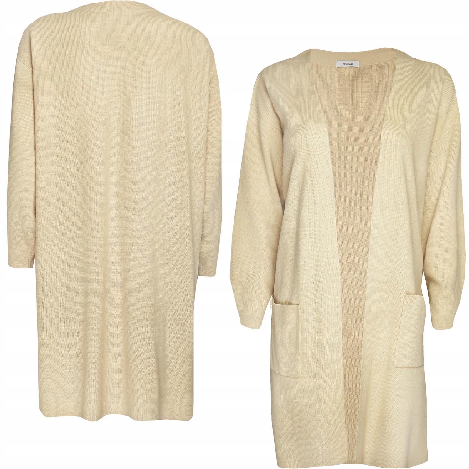 C&a Długa Narzuta Sweter Kieszenie Beż XL 42