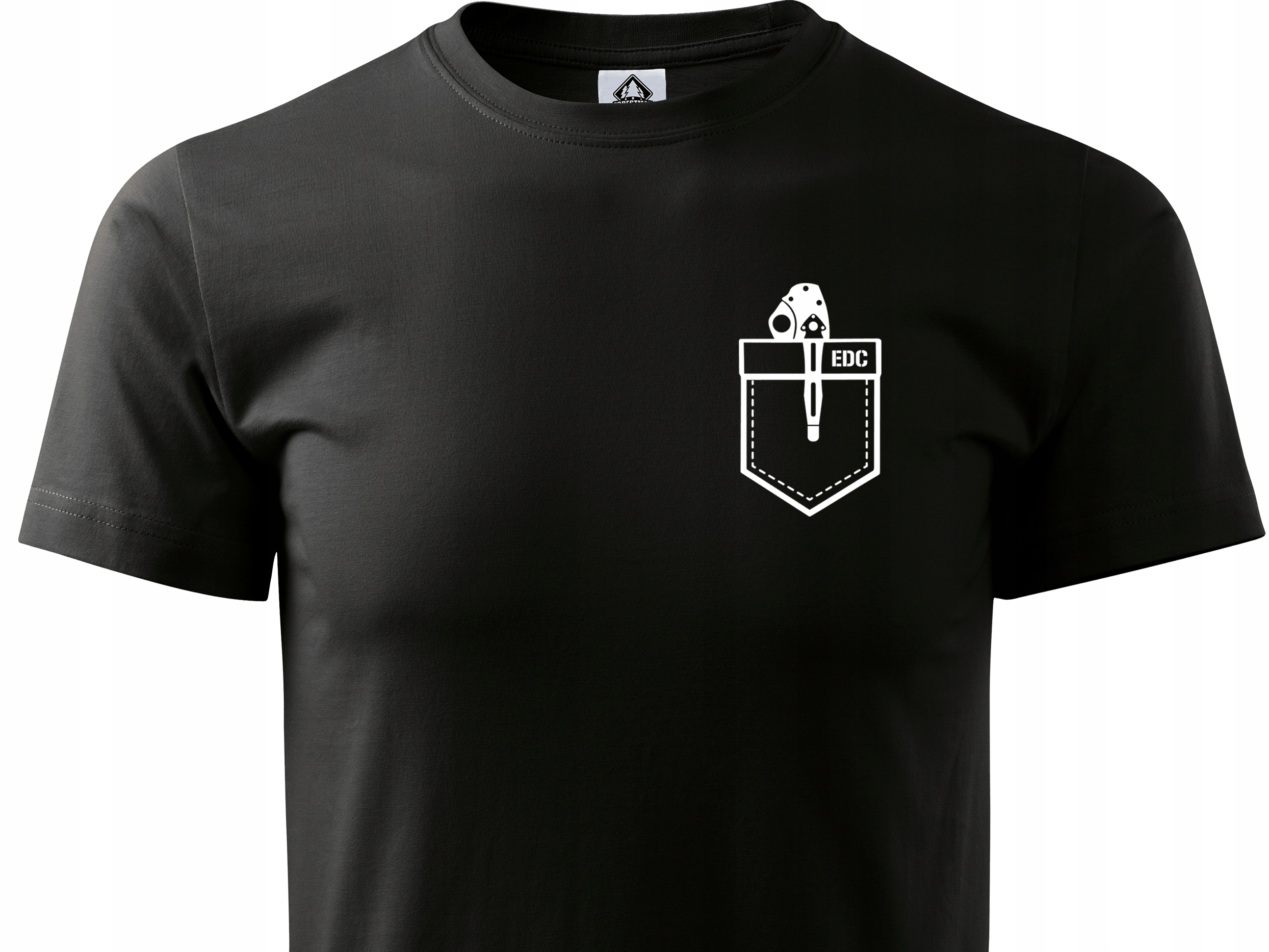 Czarny T-shirt Edc nadruk kieszonka nóż Spyderco
