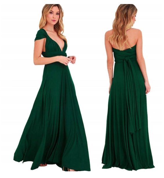 Długa Suknia Wiązana Sukienka Maxi Wesele Zielona