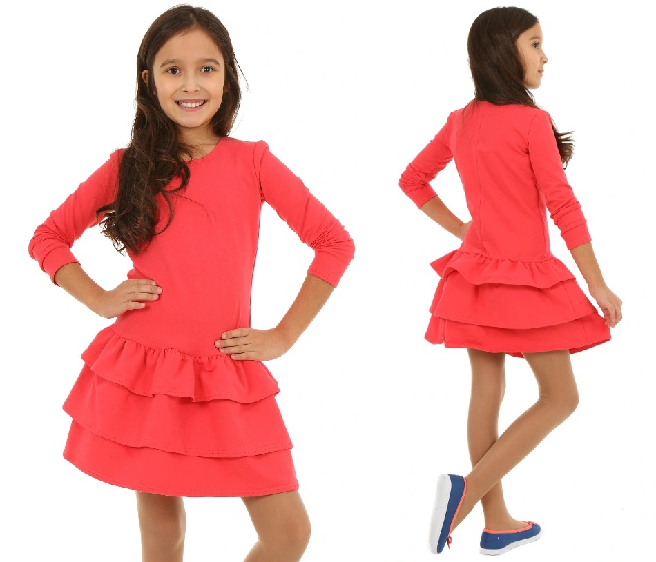 Dresowa sukienka z trzema falbanami, 152