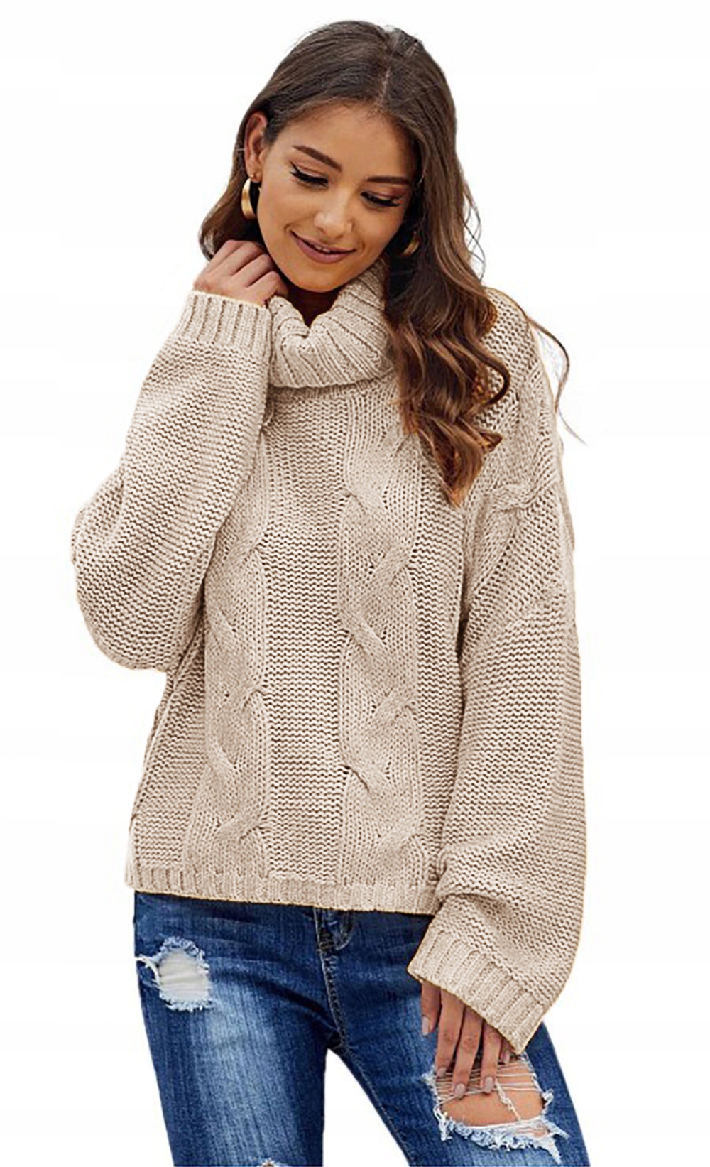 Mikos gruby ciepły sweter damski z golfem 692 beż