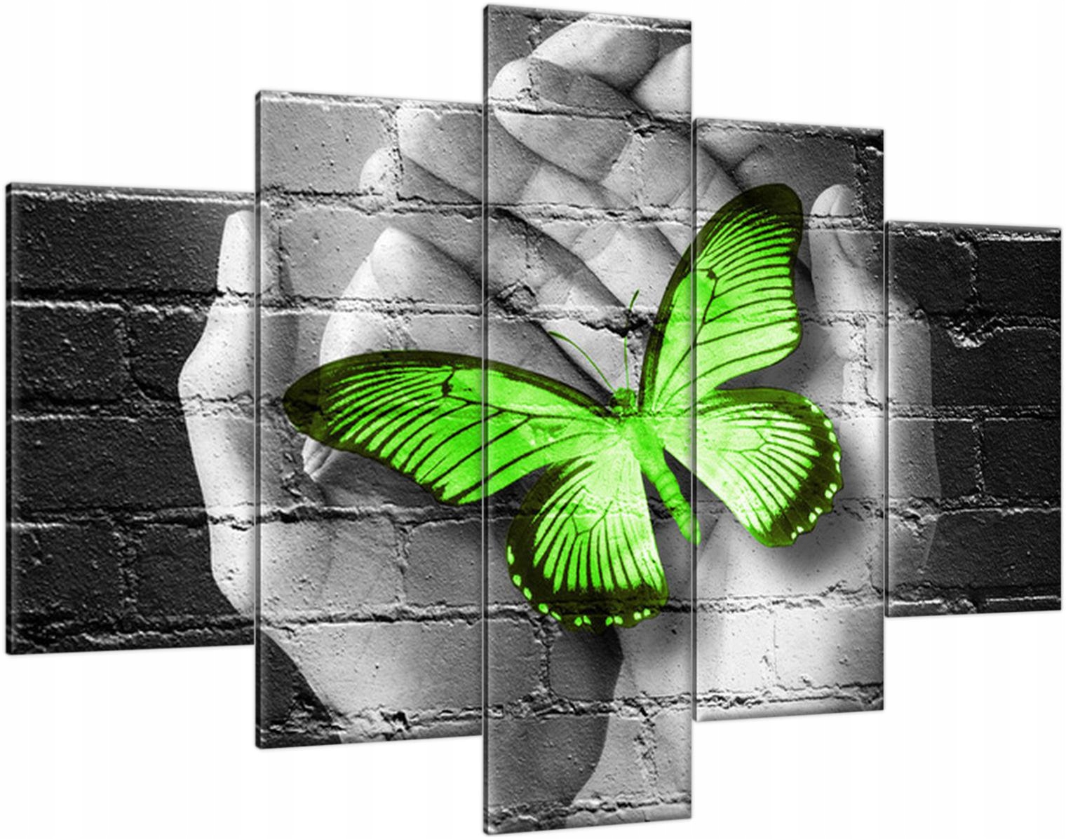 Obraz 150x105 Zielony Motyl Dłonie Cegła 3D Salon