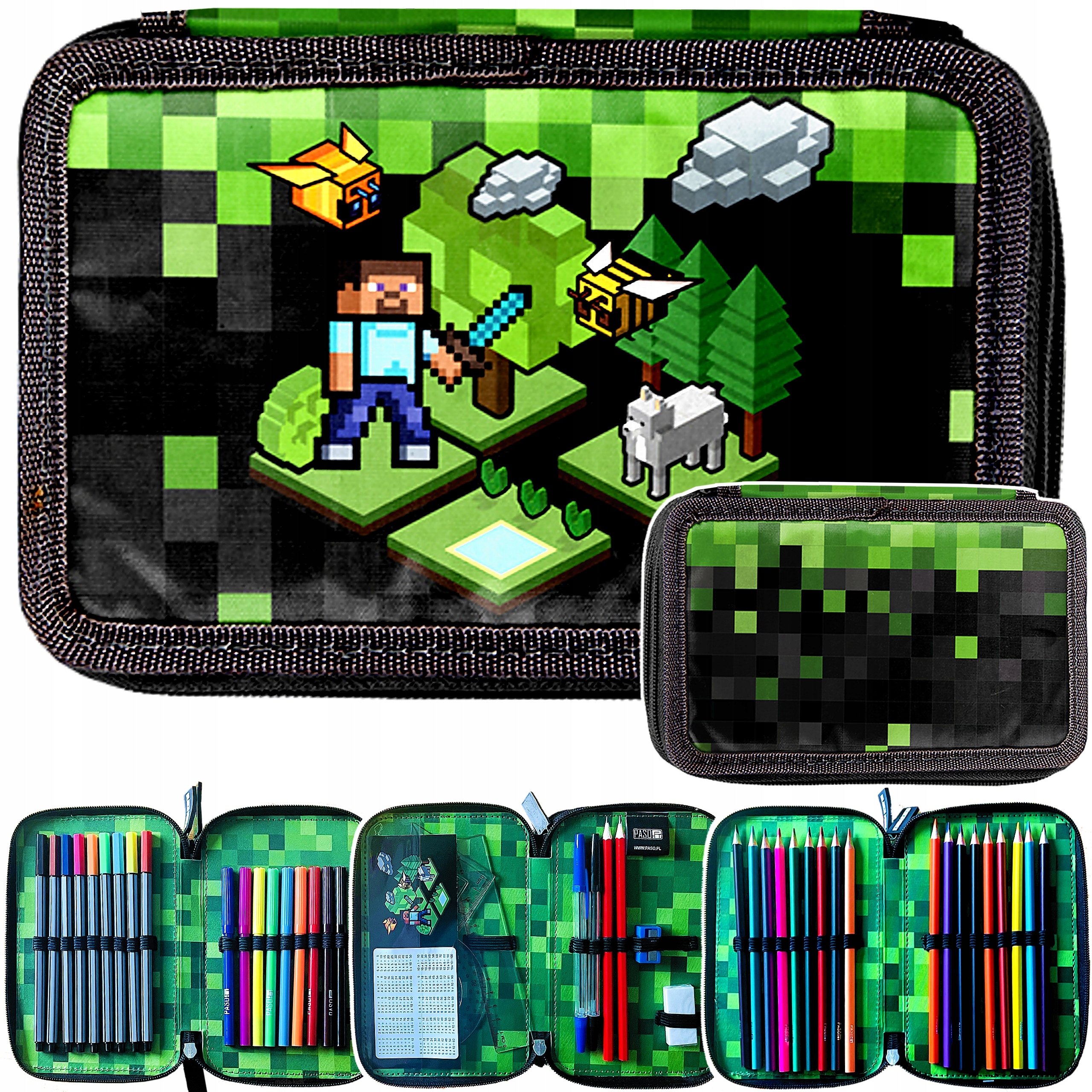 Piórnik Z Wyposażeniem Trzykomorowy fana Minecraft
