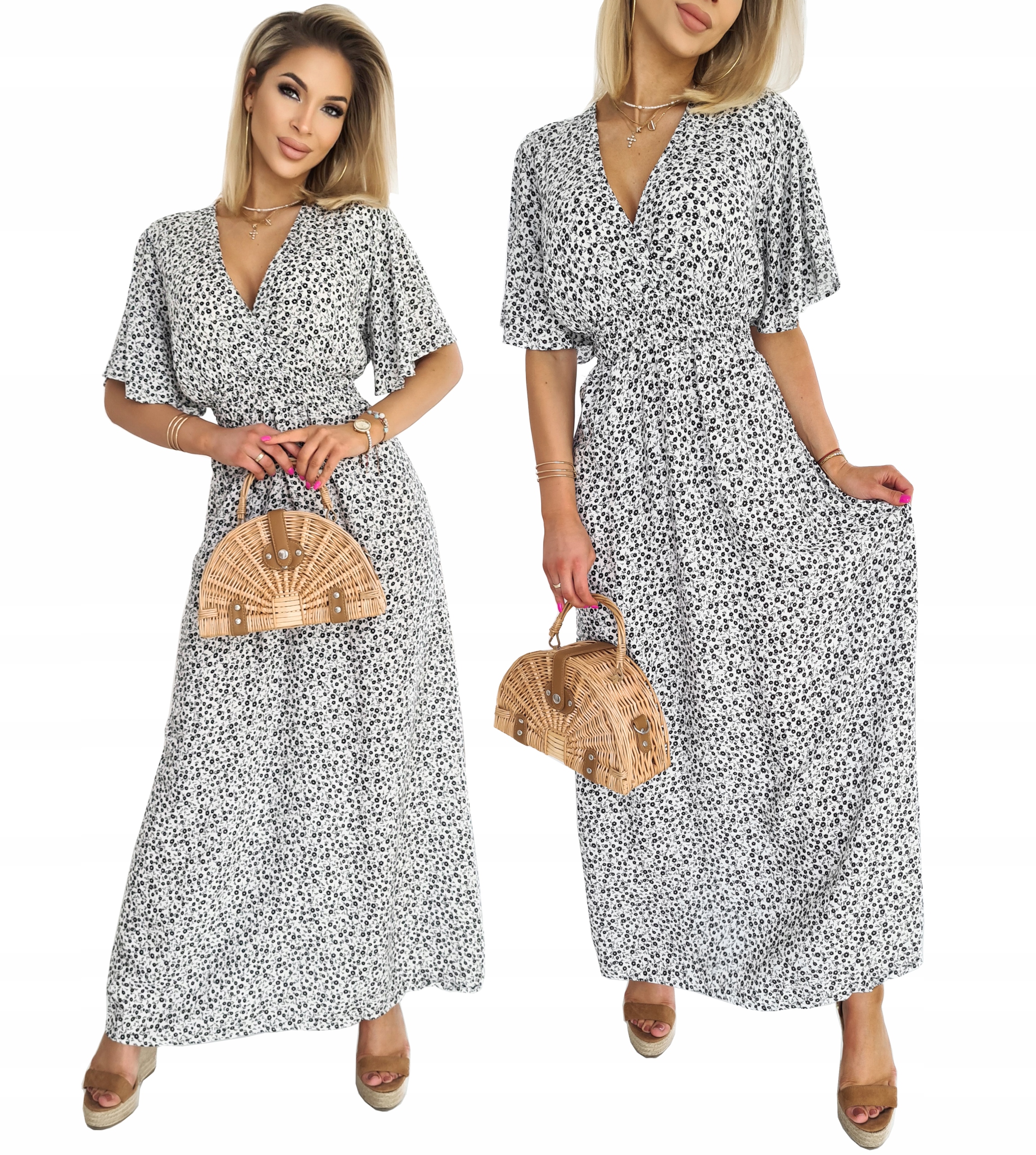 Romantyczna Kobieca Sukienka Maxi Kopertowy Dekolt