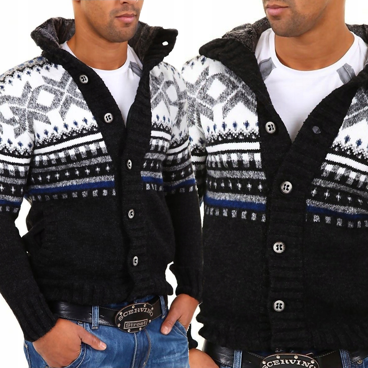 Sweter Kardigan Norweski Stójka Ocieplana Regular