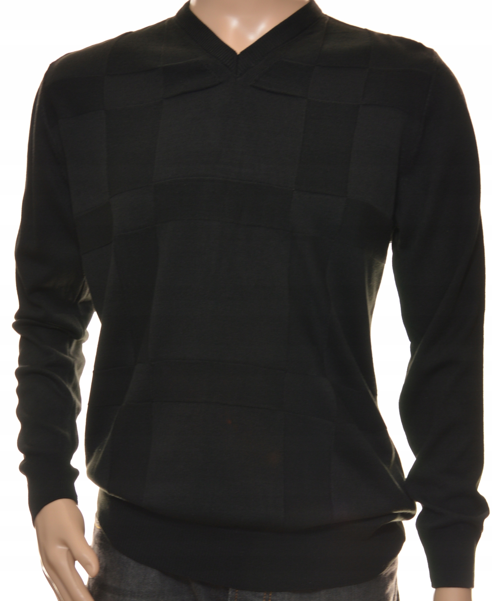 Sweter męski w serek z kaszmirem czarny XXL 2XL