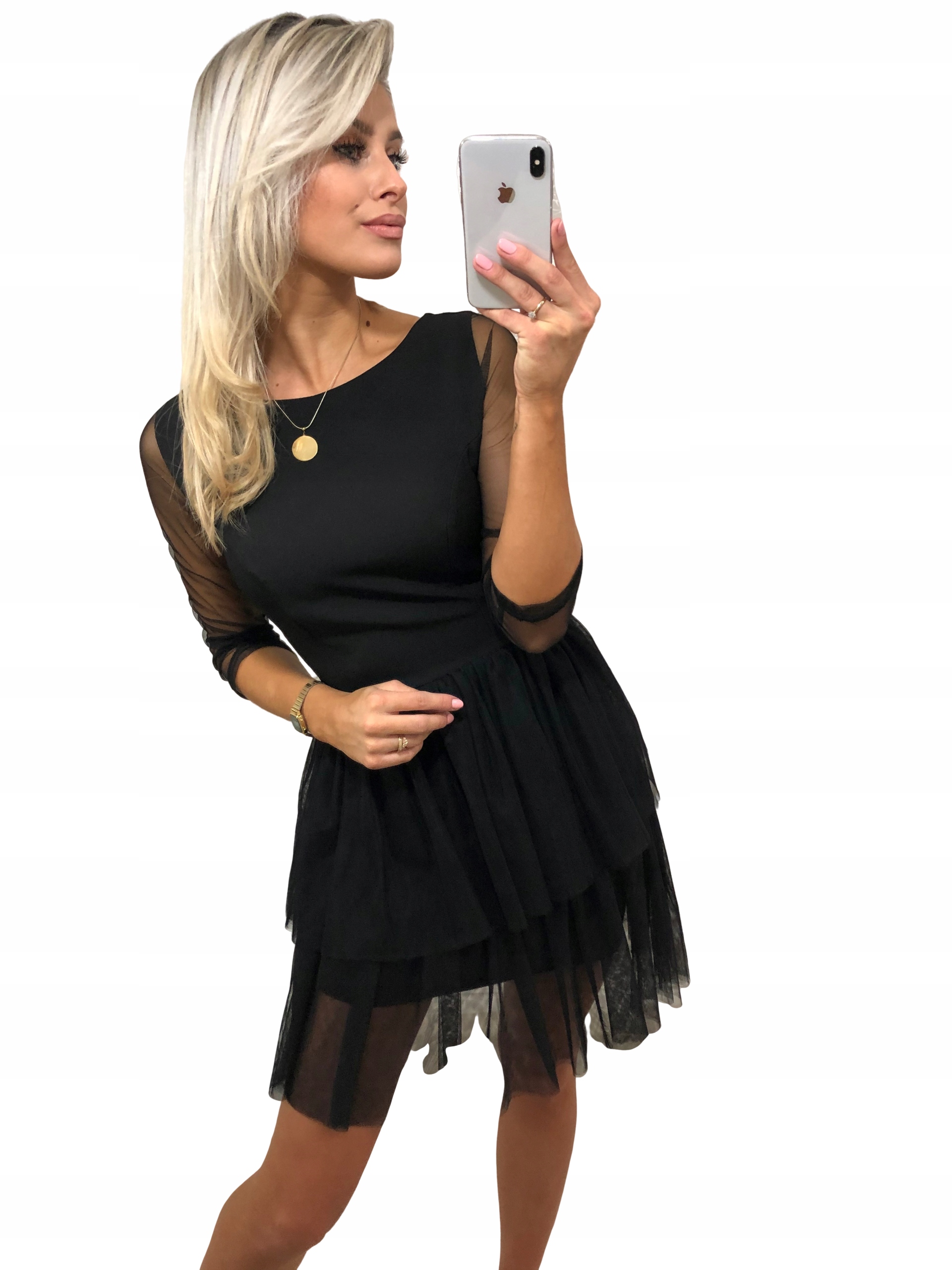 Wizytowa Sukienka Z Tiulem Czarna ROZM-36+