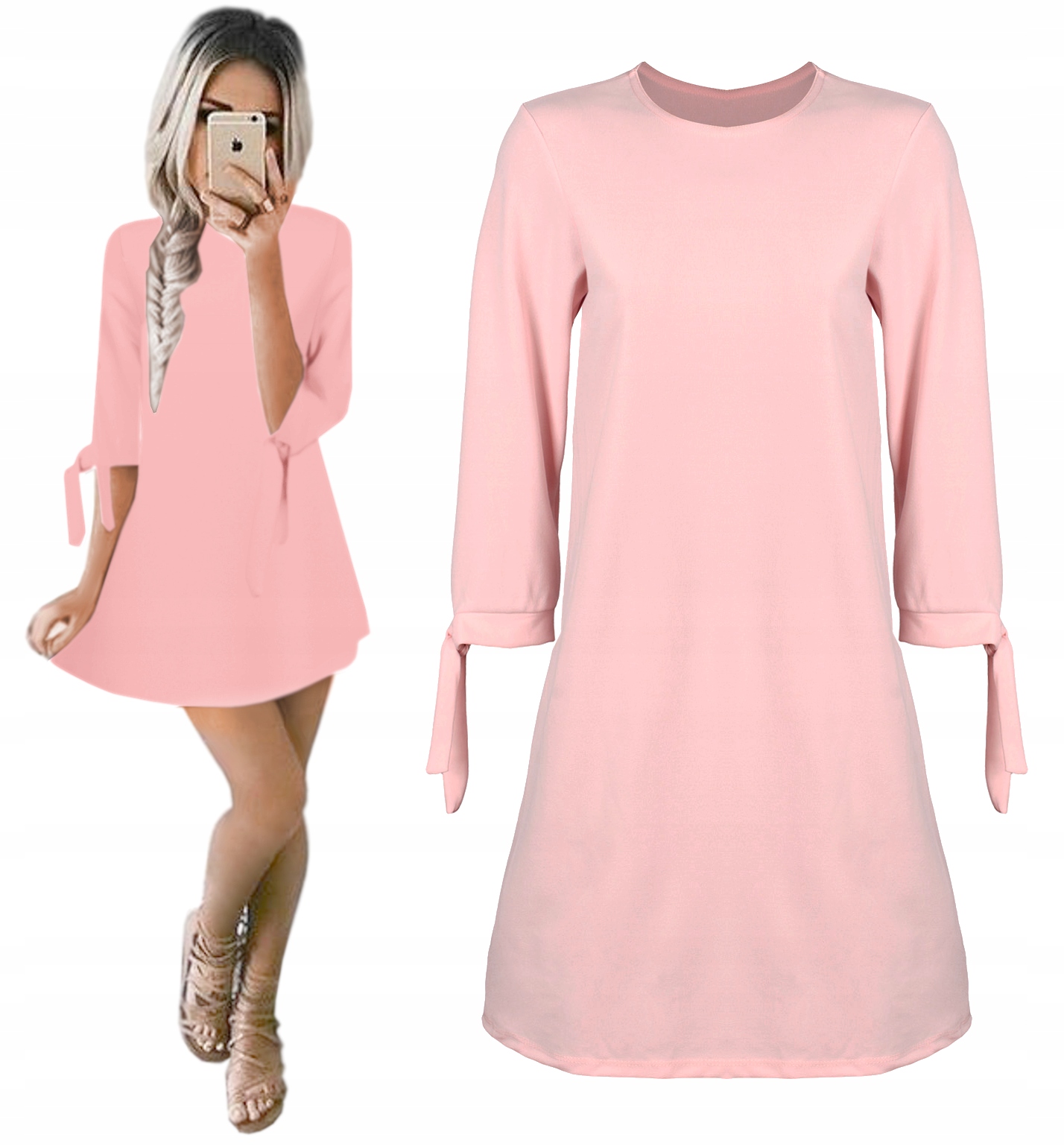 Zmysłowa Sukienka Trapezowa Wiązane Rękawy Kolory