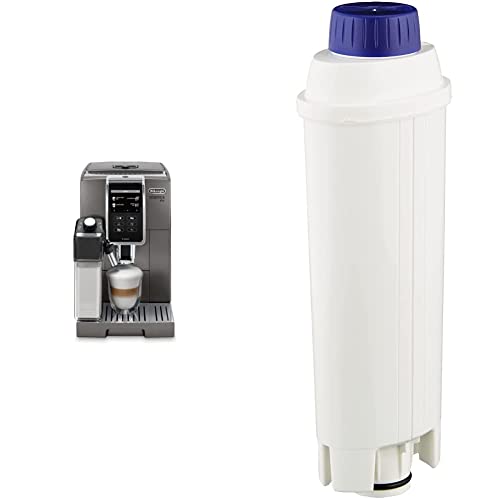 - De'Longhi Dinamica Plus ECAM 370.95.T Kaffeevollautomat mit Milchsystem, titan & Original Wasserfilter DLSC002 - Zubehör für De'Longhi Kaffeevollautomaten, für die Pflege der Maschine, weiß
