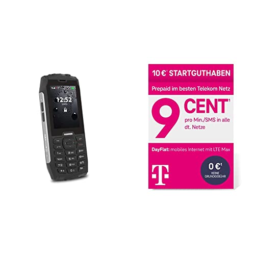 - Hammer 4 Outdoor Handy ohne Vertrag, 2.8 Zoll Farbdisplay, Robust, Mega Batterie 2000 mAh, Wasserdicht (IP68), Stoßfest - Silber & Telekom MagentaMobil Prepaid Basic SIM-Karte, 10 EUR Startguthaben