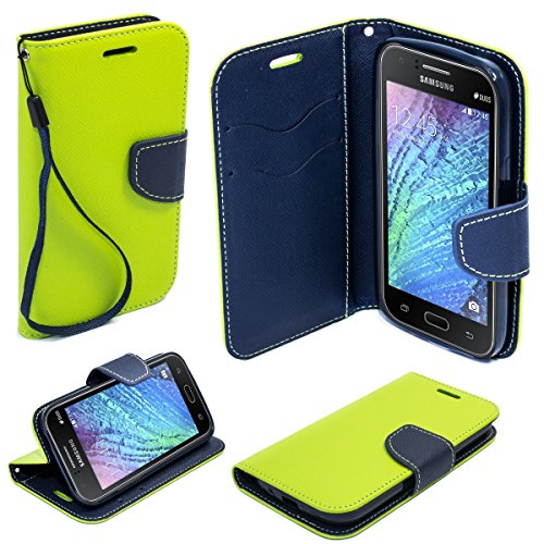 - Moozy zweifarbige Fancy Tagebuch Buch Flip Handy Tasche mit Stand / Handschlaufe / Silikon Handyhalter für Samsung J100H Galaxy J1 Hellgrün / Blau