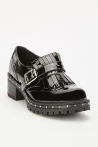 Shiny Textured Block Heel Courts