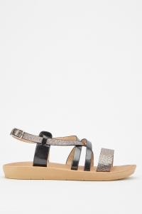 Shimmery Contrast Strap Sandals