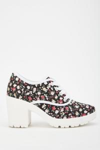 Flower Print Chunky Heel Plimsolls