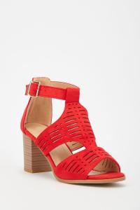 Laser Cut Block Heel Sandals