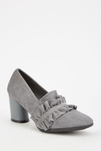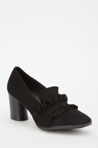 Ruffle Trim Suedette Heeled Loafers