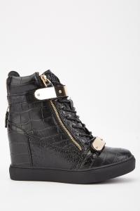 Mock Croc Wedged Heel Boots