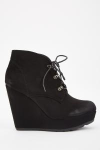 Worn Suedette Wedged Boots