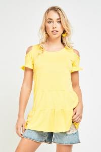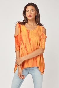Cold Shoulder Tie-Dyed Asymmetric Top