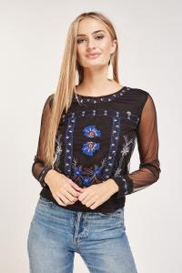 Embroidered Mesh Overlay Top