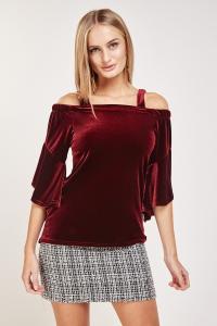 Cold Shoulder Velveteen Top