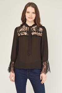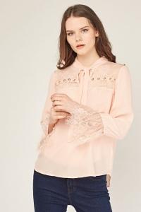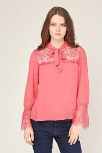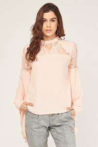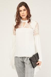 Lace Insert Bell Sleeve Blouse