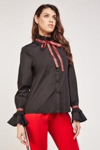 Pleated Tie Up Neck Trim Shirt