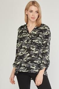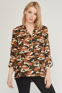 Camouflage Print Sheer Blouse