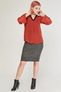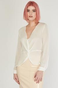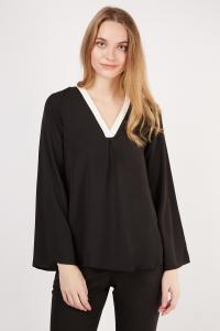 V-Neck Contrasted Sheer Blouse