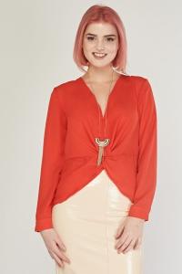 Slit Front Sheer Red Blouse