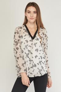 Butterfly Print Sheer Blouse