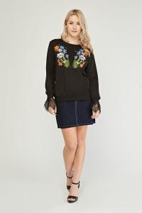 Embroidered Lace Detail Sweatshirt