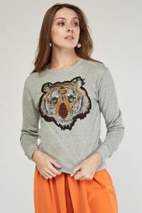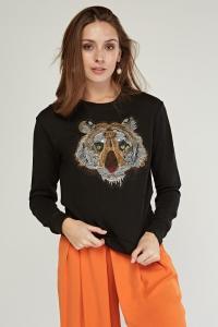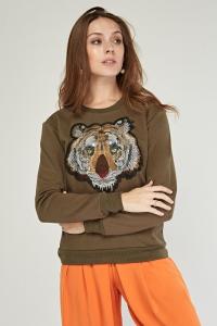 Embroidered Tiger Applique Sweatshirt