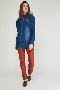 Embroidered Patch Light Denim Shirt