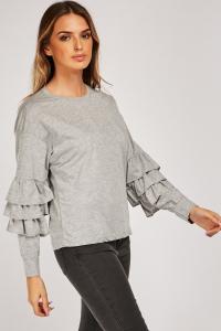 Layered Frilly Sleeve Jersey Top