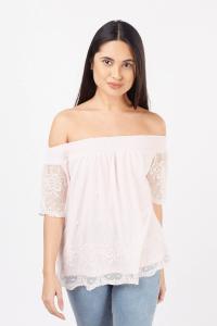 Off Shoulder Embroidered Mesh Top
