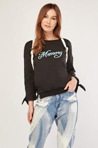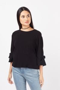 Tie Up Sleeve Black Blouse