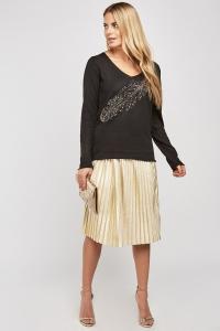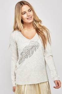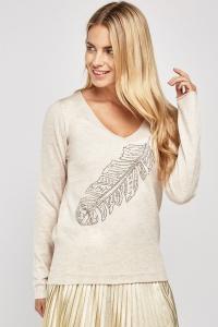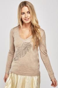 Encrusted Feather Front Knit Top