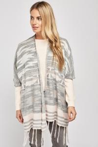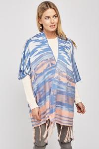Aztec Pattern Fringed Poncho