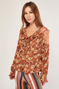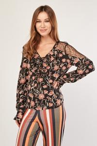 Floral Lace Insert Ruffle Blouse