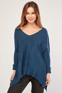 Rib Contrast Asymmetric Knit Pullover