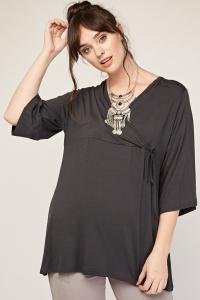 3/4 Sleeve Dark Grey Wrap Top