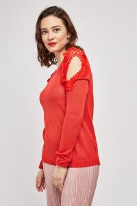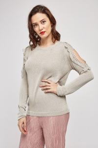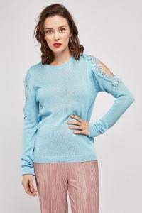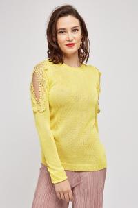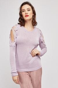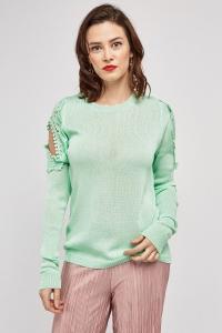 Crochet Cut Out Sleeve Knit Jumper