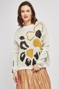Placement Floral Print Knit Jumper