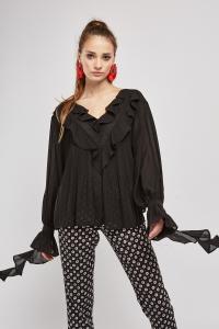 Pleated Contrast Sheer Blouse
