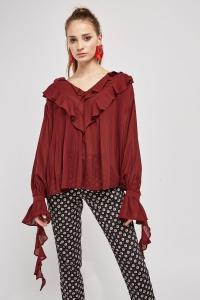 Maroon Sateen Contrast Blouse