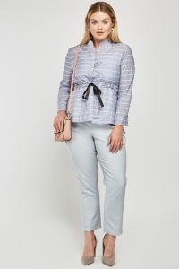 Crinkled Tie Up Striped Blouse