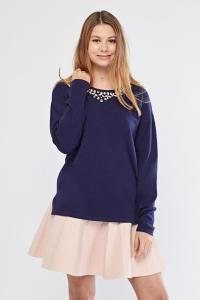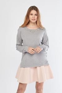 Embellished Neck Knit Top