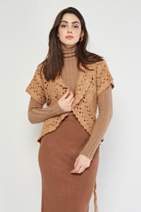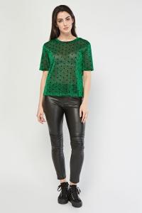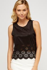Laser Cut Hem Suedette Top
